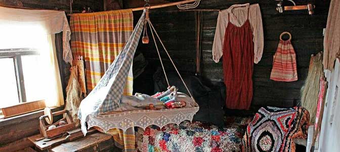 На сегодняшний день в экспозиции музея представлена всего одна вещь, по преданию принадлежавшая Арине Родионовне. Это домотканная торба. Все остальные экспонаты, относящиеся ко времени пребывания здесь няни поэта, по крупицам собирались жителями Гатчинского района. Экскурсия по домику начинается с сеней, где представлены старинные орудия труда, большой ларь для хранения вещей и разные средства передвижения. Четвертую часть горницы занимает настоящая русская печь. По стенам расположены лавки. К потолку подвешены веники, засушенные лекарственные травы. В помещении экспонируются предметы быта: старинная прялка; первый в России утюг; своеобразный агрегат для приготовления картофельного пюре и пр.